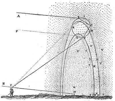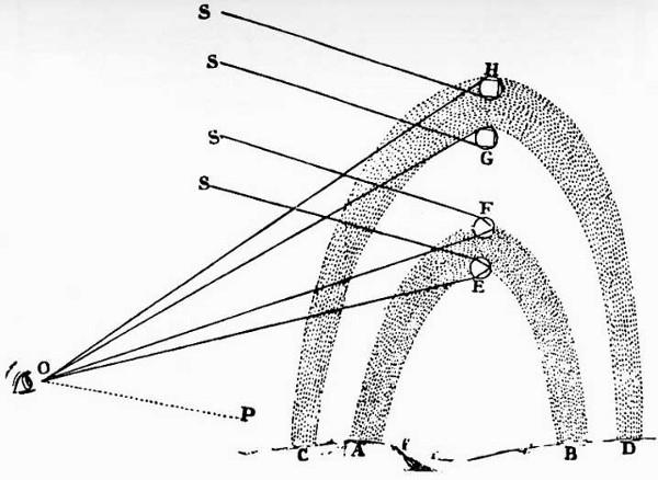 Image 1: René Descartes’ sketch of how primary and secondary rainbows are formed (probable engraver: Frans van Schooten the younger).