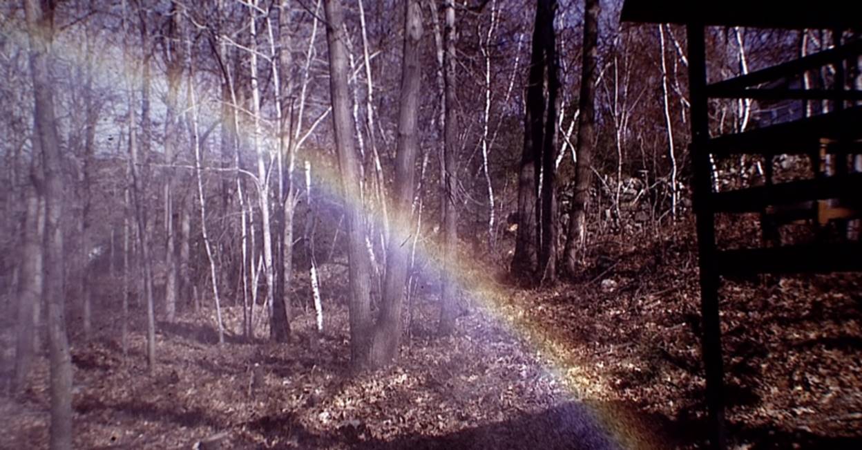 Image 4: Walter Lewis’ backyard and his rainbow. When you water your garden when the sun is high in the sky, you can get a rainbow all the way around you. 42° away from the line is always red. If you turn around and look back, it is red.